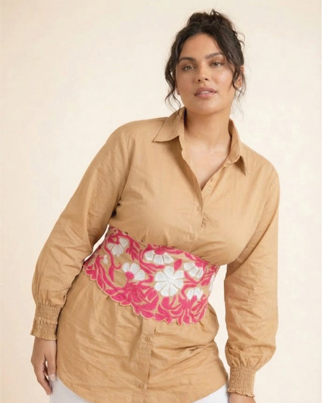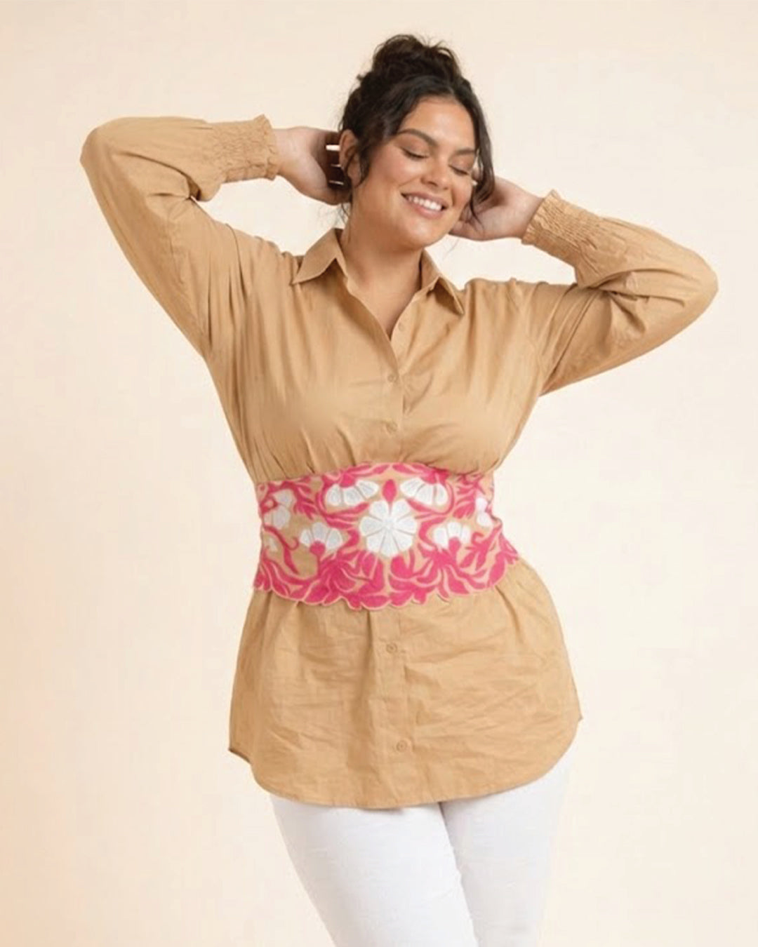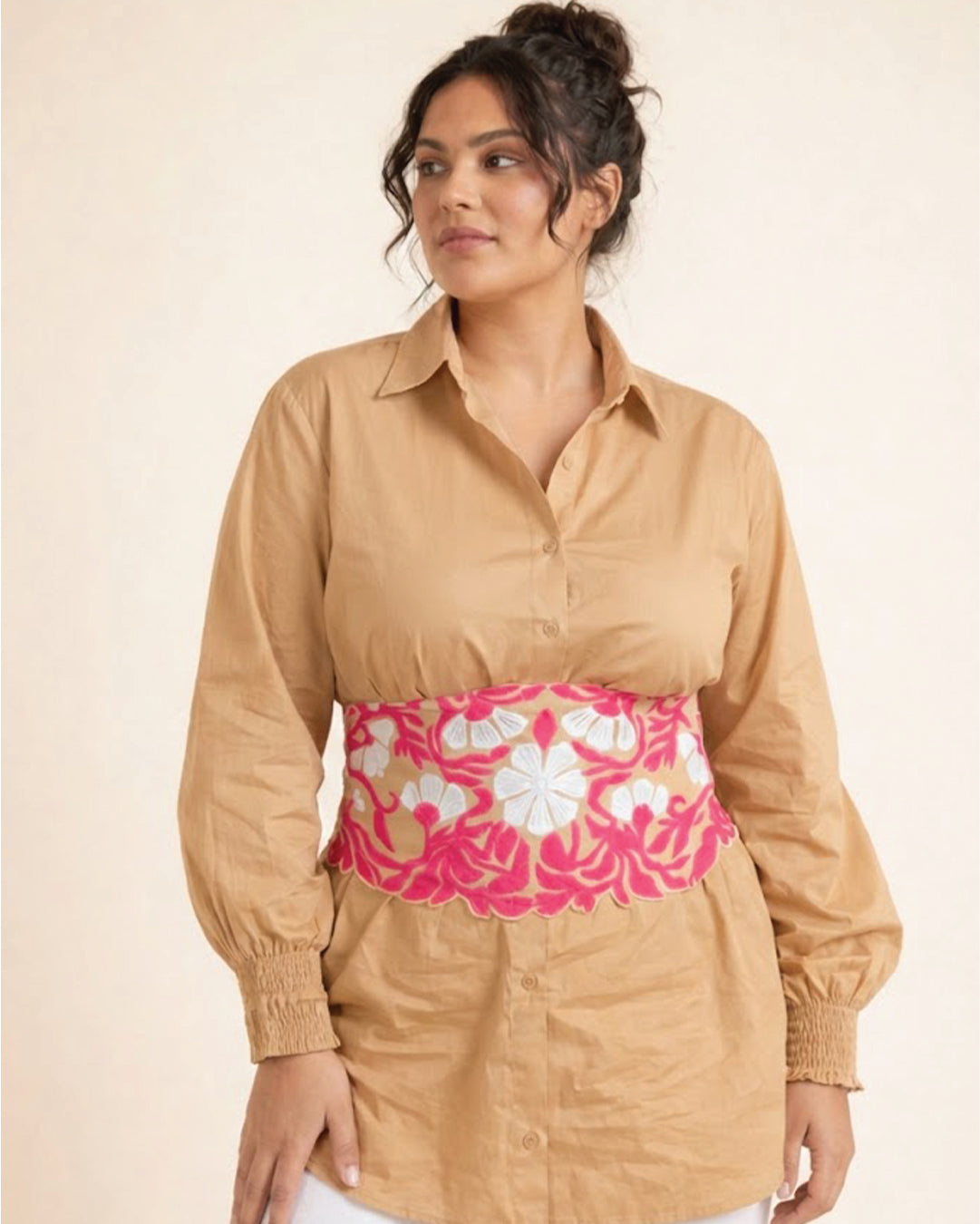 Ivory Grace shirt with Appliqué Tie belt