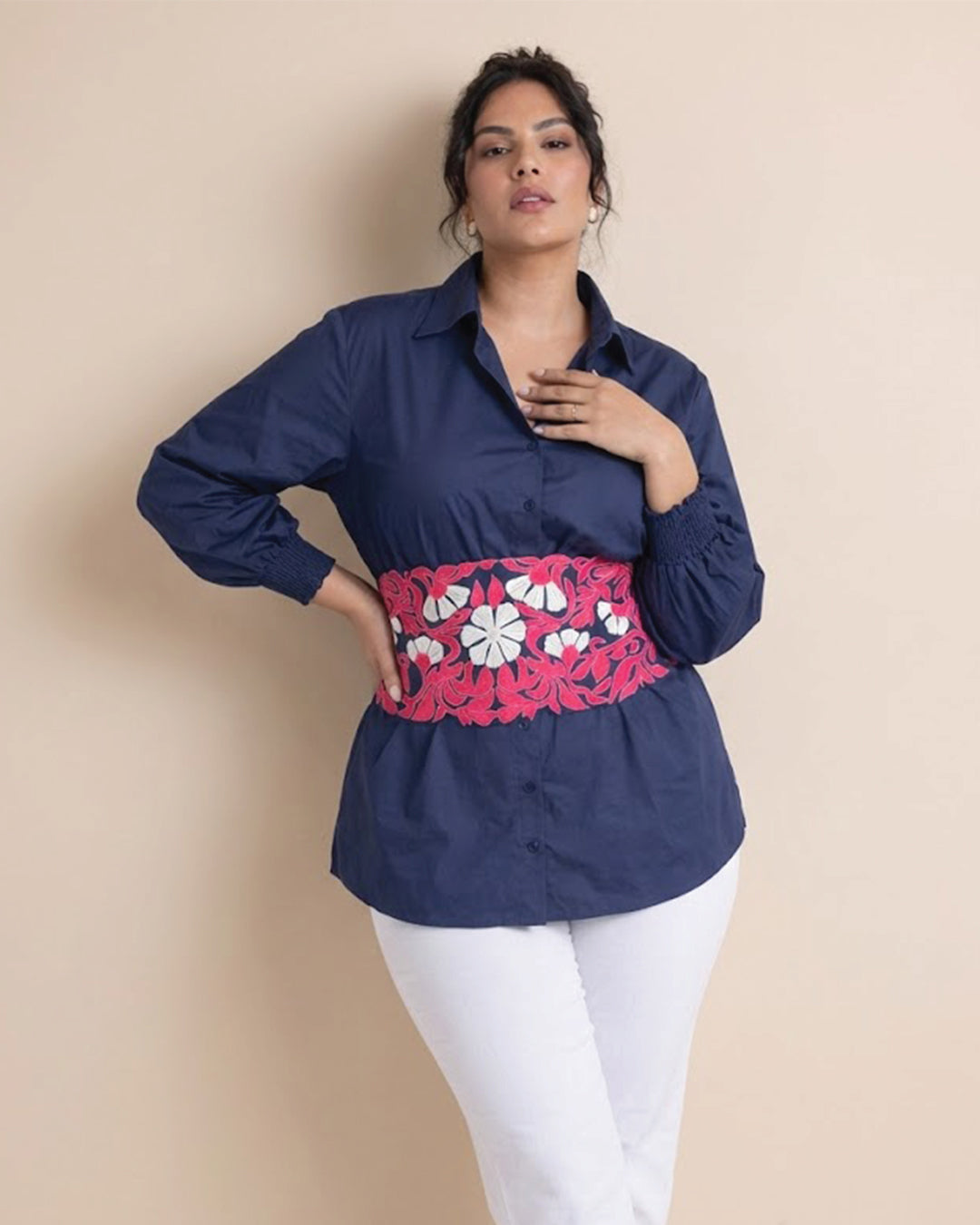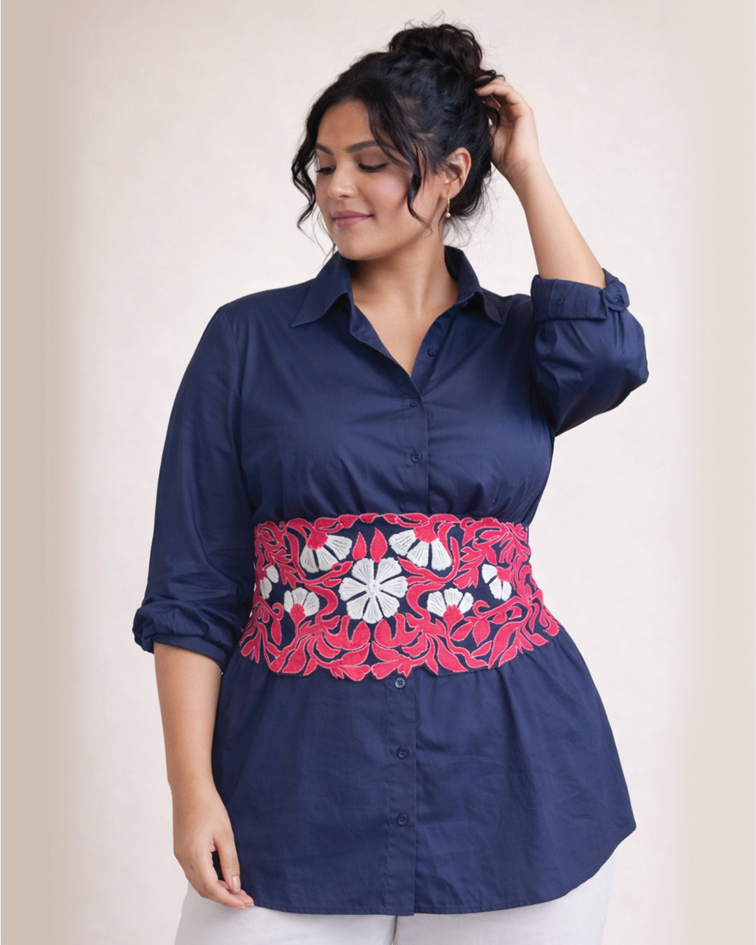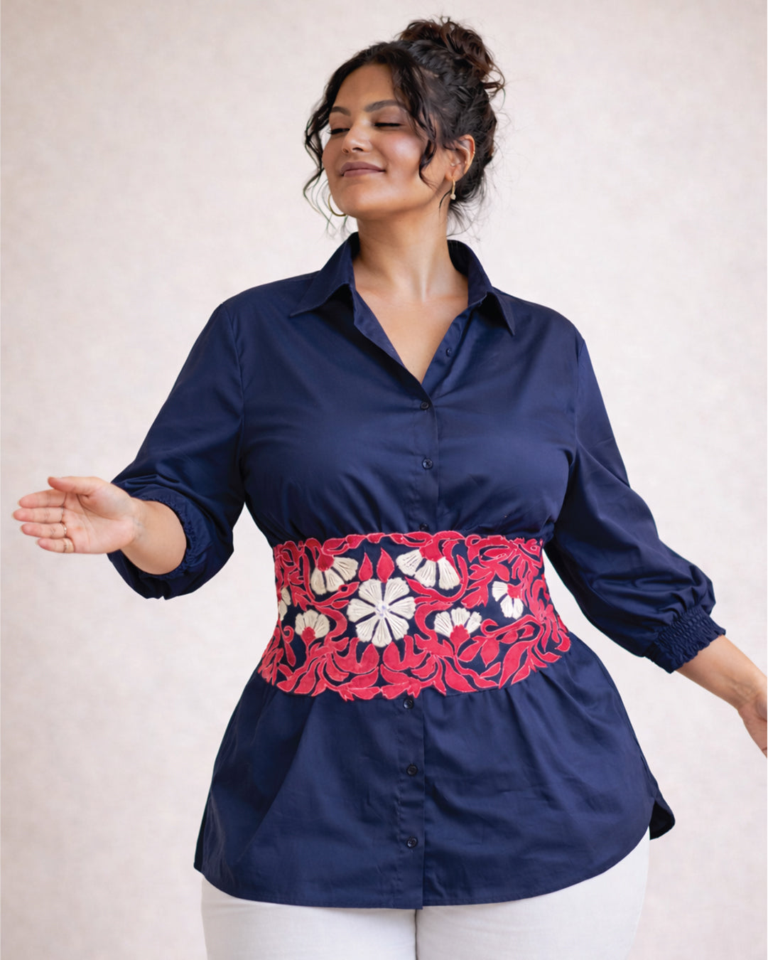 Ivory Grace shirt with Appliqué Tie belt