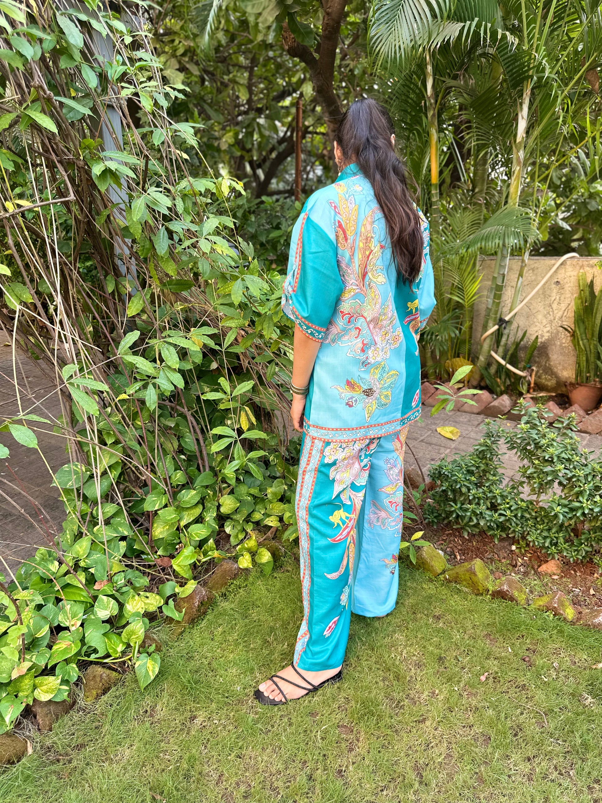 Elevate your style with this effortlessly chic co-ord set, featuring a button down shirt and wide-leg pants in a stunning peach and white floral print. Designed for comfort and elegance, this set boasts a flowy silhouette, long sleeves with cuffs, and a collared neckline for a sophisticated yet relaxed look.