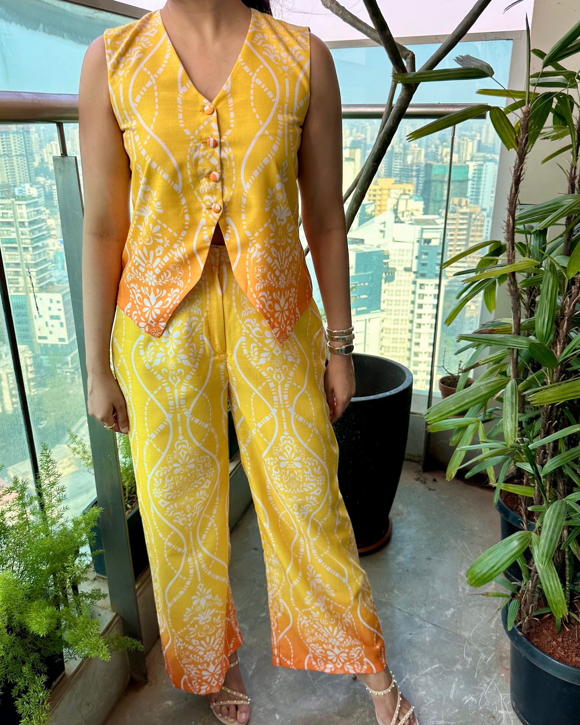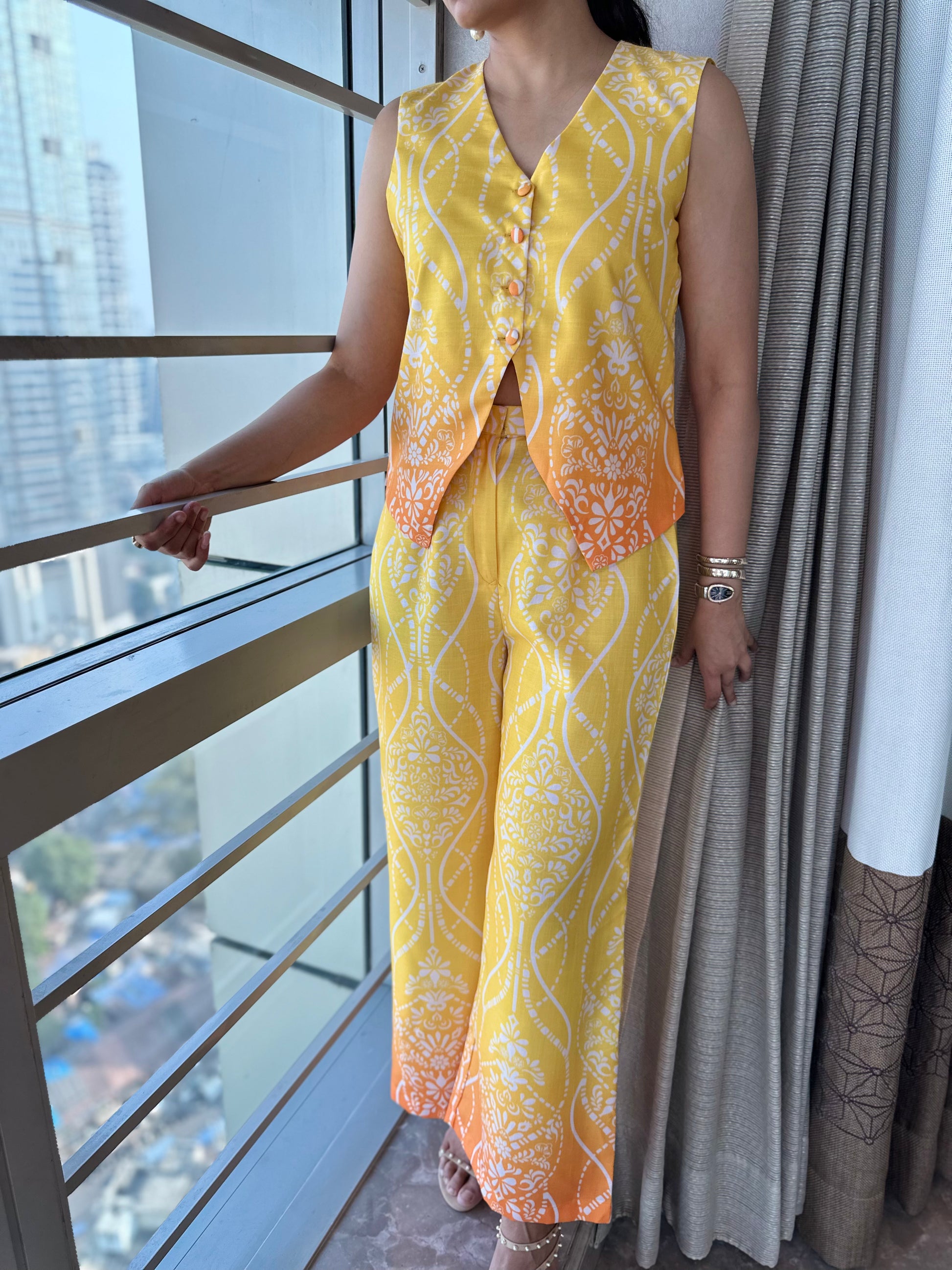 Make a bold fashion statement with this elegant two-piece co-ord set, designed with a striking print that blends modern style with a timeless ethnic touch.